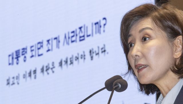 국회 법제사법위원회 야당 간사 선임이 불발된 나경원 의원은 의총 주제 발표에 나서 "이 대통령 재판을 재개하는 것과 의회를 정상화하는 것이 대한민국 자유민주주의를 지키는 핵심"이라며 "의회 정상화에 있어 핵심은 '법사위원장 돌려달라'가 될 것"이라고 주장했다.