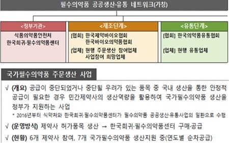 한편 ‘필수의약품 공공생산·유통 네트워크’는 필수의약품 제조가 개시되는 단계부터 유통에 이르는 공급망 단계를 포괄하여 지원하며, 향후 주문생산 제도를 활성화하기 위한 대상 선정 및 행정적·기술적 지원 사항을 체계적으로 논의하고 제약사에 필요한 인센티브를 제도에 반영하는 것을 목표로 한다.