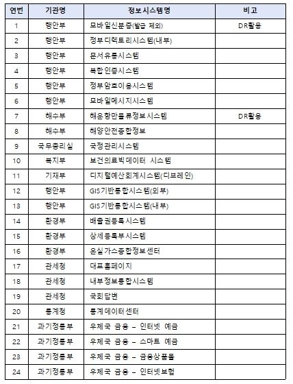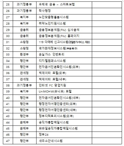또한, 지자체등 기관 차원의 정확한 안내, 대응을 위해 96개 시스템 목록을 제공한다