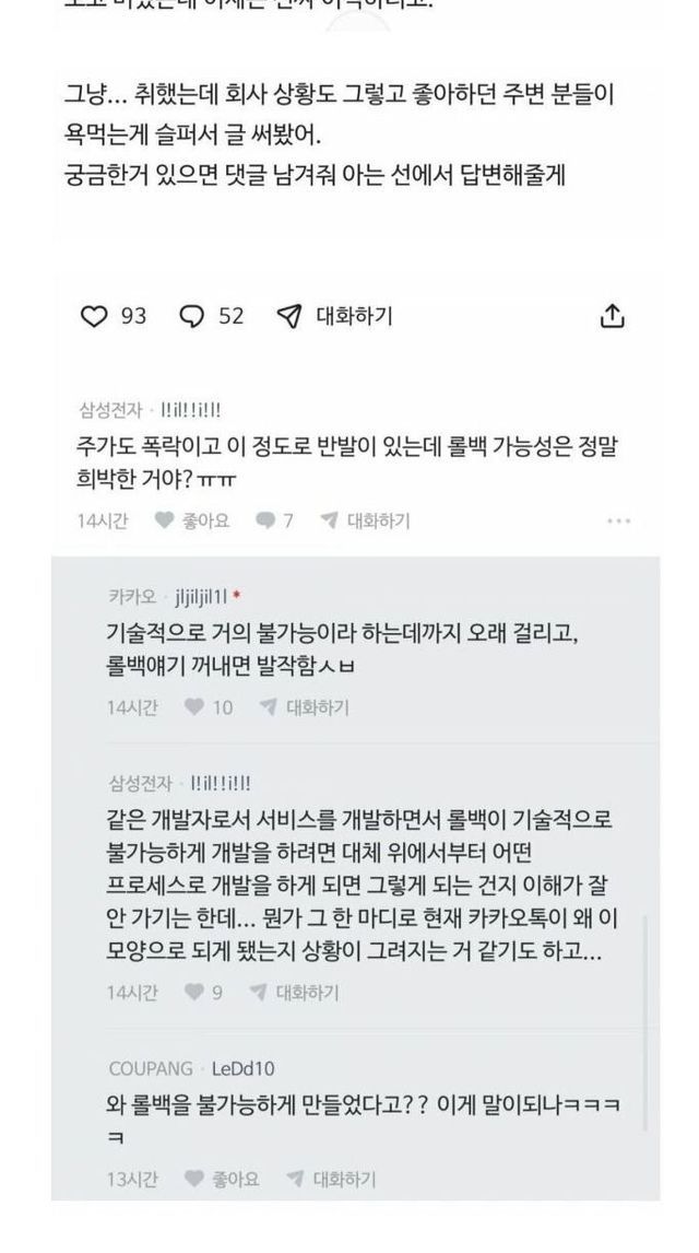 카카오톡 롤백 불가, 내부 상황 2차 버전