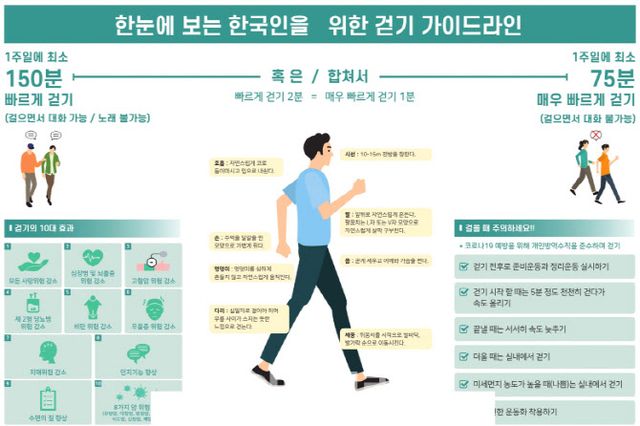 ‘걷기·달리기 가이드라인’ 등 신체활동 관련 자료는 한국건강증진개발원 누리집에서 내려받을 수 있다.