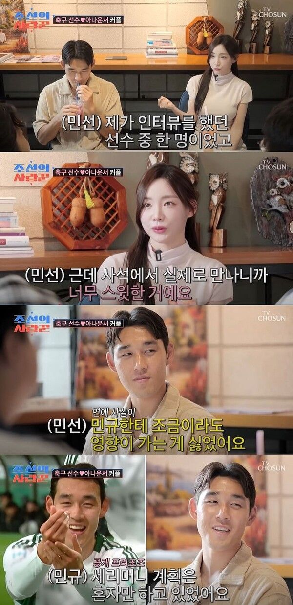 아나운서 곽민선이 예비신랑인 축구선수 송민규를 위해 비밀연애를 했다고 말했다.
