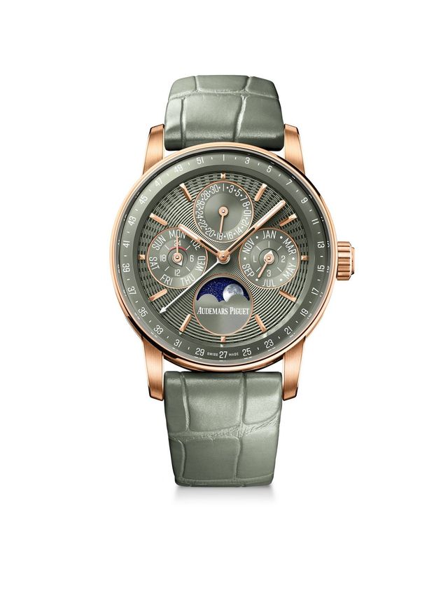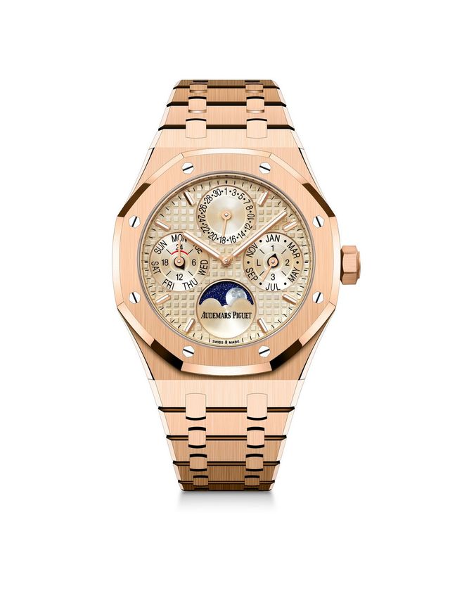 그 중심에는 오데마 피게가 야심차게 준비한 신작이 있었다. ‘로열 오크’와 ‘코드 11.59 바이 오데마 피게’ 컬렉션에서 새롭게 선보인 케이스 사이즈 38mm의 퍼페추얼 캘린더 모델은 단순히 크기만 작아진 버전이 아니었다. 특허 5개로 보호받는 칼리버 ‘7136’과 ‘7138’을 품은 이 시계들은 ‘올 인 더 크라운(all in the crown)’이라 불리는 새로운 조정 시스템을 통해 도구 없이 하나의 크라운으로 모든 설정을 가능케 했다. 복잡한 기계식 컴플리케이션이 마침내 직관적이면서도 손쉬운 착용 경험을 약속한 것. 기술적 혁신 위에 얹힌 미학 역시 눈부셨다. 스틸과 핑크 골드 케이스에 ‘로열 오크’의 시그너처 디테일인 그랑드 타피스리(grande tapisserie) 다이얼, 섬세하게 배치한 카운터가 각각 다른 빛을 받아내며 손목 위 작은 우주를 펼쳐냈다. 무엇보다 38mm라는 사이즈는 여성뿐 아니라 더 다양한 손목에 균형감 있게 어울릴 수 있도록 설계, “복잡한 시계는 남성적”이라는 오래된 고정관념을 단호히 밀어냈다.