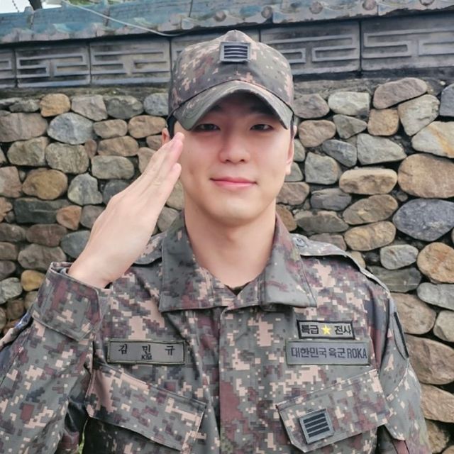 공개된 사진 속 김민규는 군복을 입고 늠름하게 경례하는 모습과 함께 ‘육군용사상’을 수여받은 장면을 공개해 성실한 복무를 인증했다.
