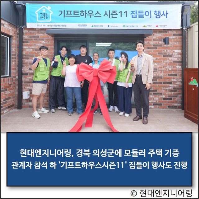 현대엔지니어링이 경상북도 의성군주거 취약 가정에 모듈러 주택을 기증하고, '기프트하우스 시즌11' 집들이 행사를 진행했다.