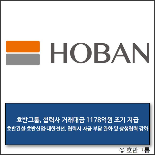 호반그룹 관계자는 "추석을 맞아 진행한 이번 거래대금 조기 지급이 협력사들의 운영 부담을 덜고 안정적인 성장을 이어가는 데 도움이 되길 바란다"며 "앞으로도 호반그룹은 협력사와 함께 성장해 나갈 수 있는 기반을 더욱 강화해 나가겠다"고 말했다.
