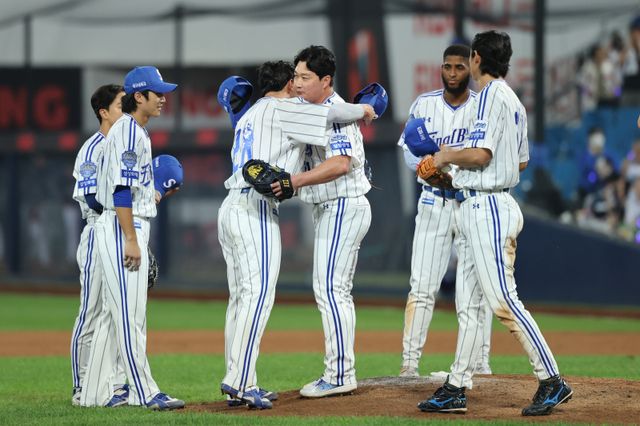 김재윤은 "(우완) 이승현의 아이디어였다. 처음엔 하이파이브를 하면서 마운드로 (오승환 선배를) 보내드리려고 했는데, 모두가 모여 인사까지 하면 장면이 더 멋있고 더 잘 보내드리는 것 같아서 인사를 추가했다"라고 돌아봤다.