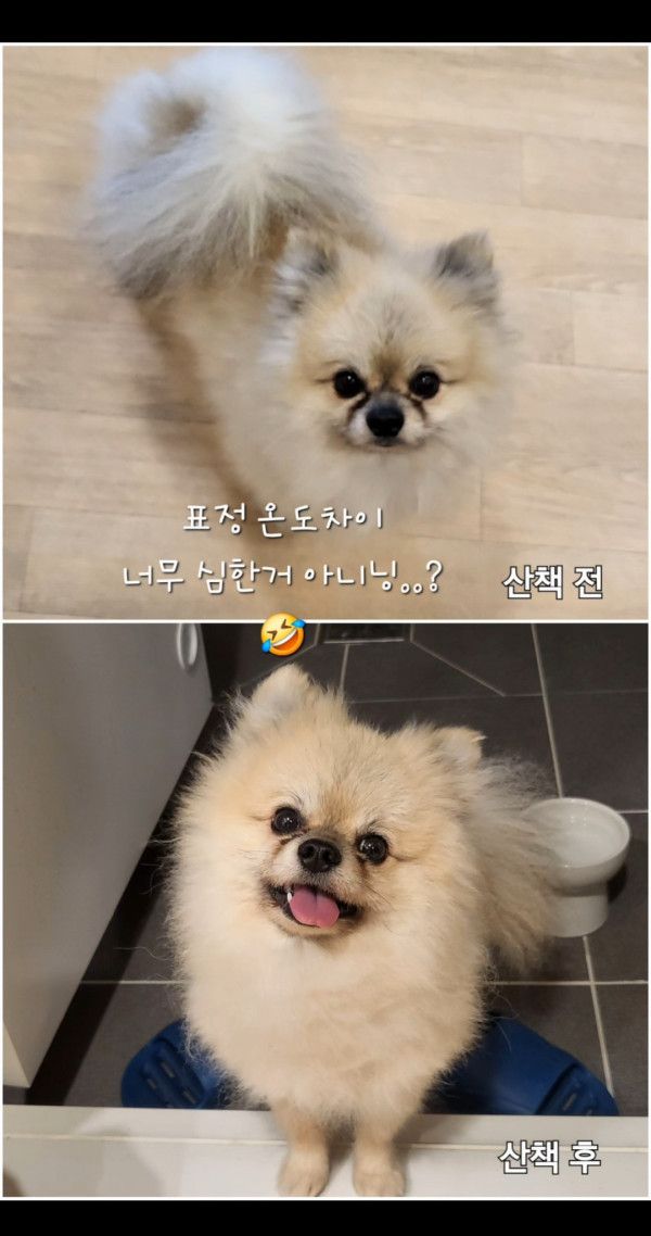 산책전,후 표정 온도차이가 이렇게 심했는지