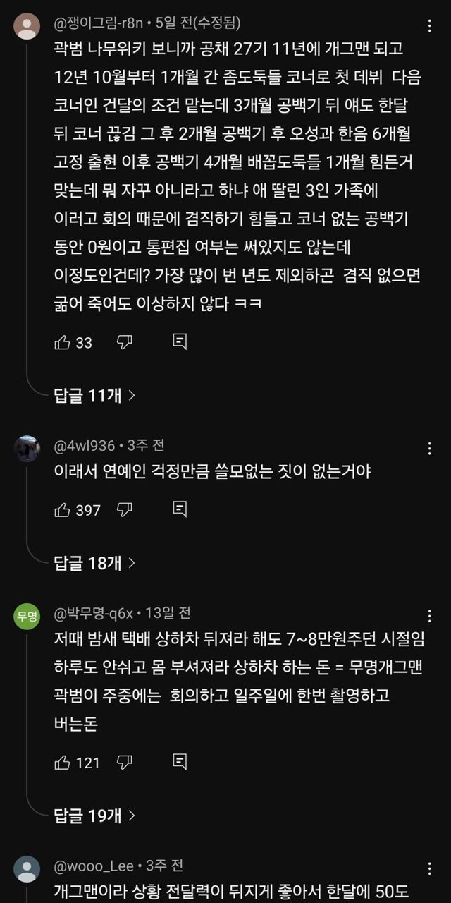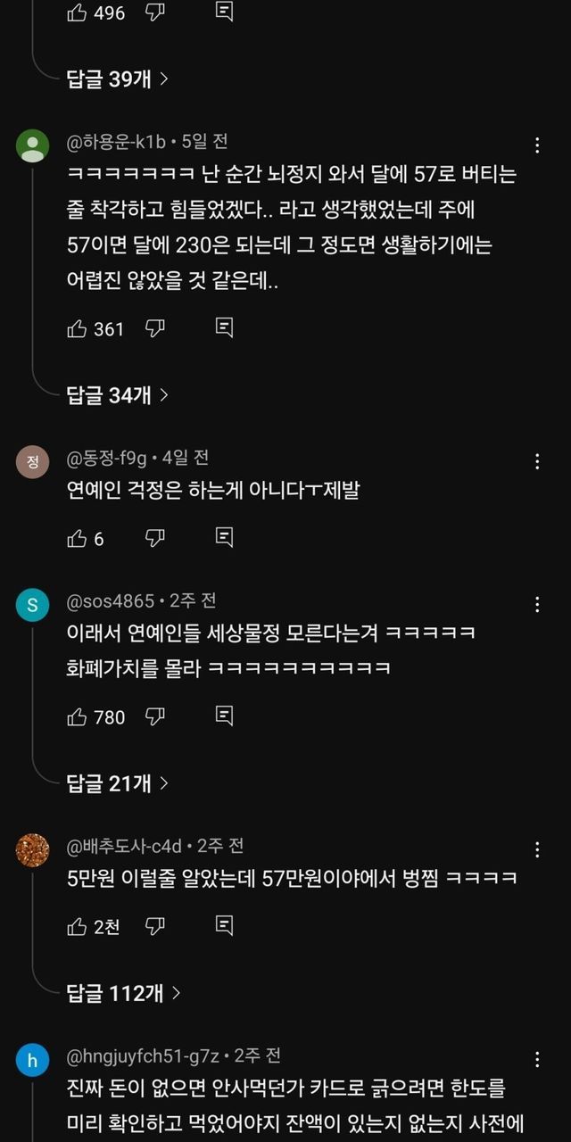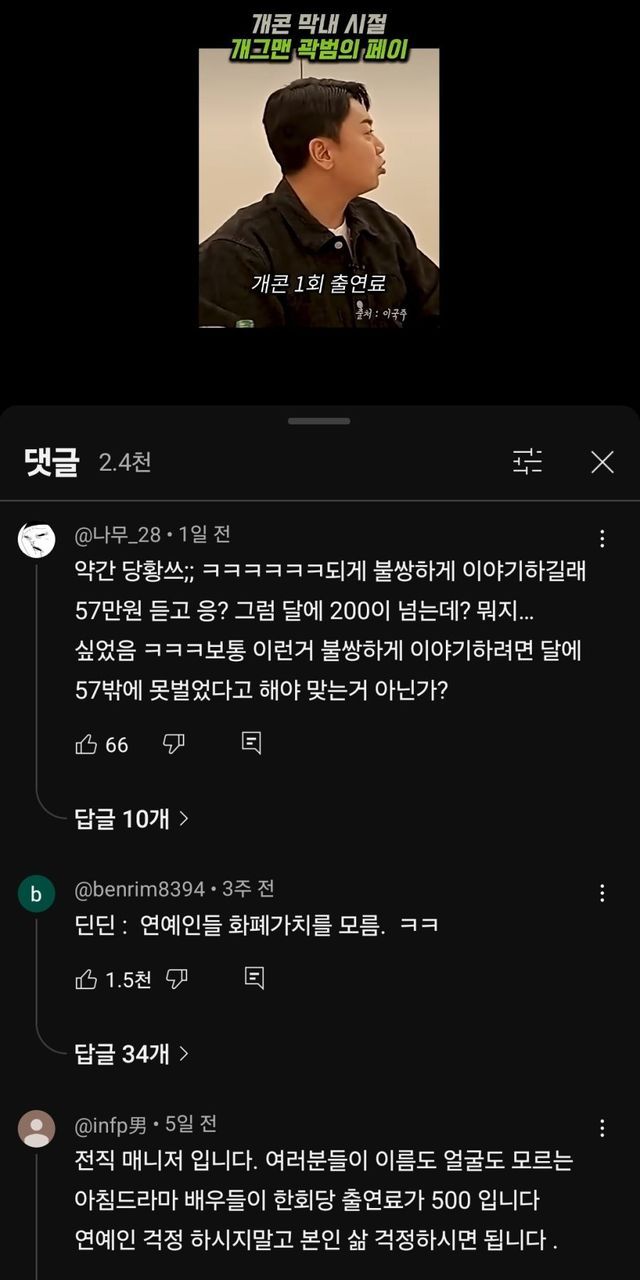 1회출연료 57만원