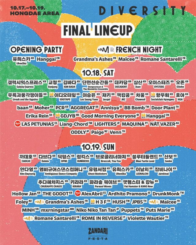 올해 잔다리 페스타는 ‘다양성’(DIVERSITY)을 주제로 국경과 장르를 초월한 다채로운 라인업을 예고했다. 일본, 대만, 호주, 프랑스, 몽골, 태국, 이탈리아 등 다양한 지역의 아티스트가 참여하며, 스페셜 티켓은 예매 오픈 직후 빠르게 매진됐다. 올해도 공연을 넘어 해외 음악 관계자와 아티스트 간 교류 플랫폼 역할을 이어갈 것으로 전망된다.