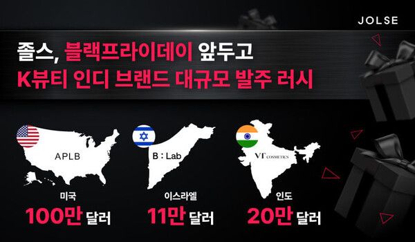 뉴시스 보도에 따르면, 바른손에서 운영하는 K뷰티 엑셀러레이터 플랫폼 졸스(Jolse)는 세계 최대 쇼핑 축제 블랙프라이데이를 앞두고 글로벌 주요 유통사로부터 총 130만 달러 이상 규모의 K뷰티 인디 브랜드 발주가 들어왔다고 1일 밝혔다.