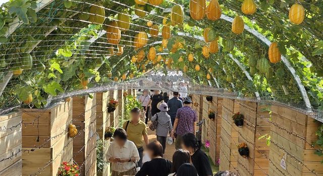 성주 참외 축제에 참여한 시민들이 참외 터널을 구경하고 있다. 기사 이해를 돕기 위한 자료 사진 / 뉴스1