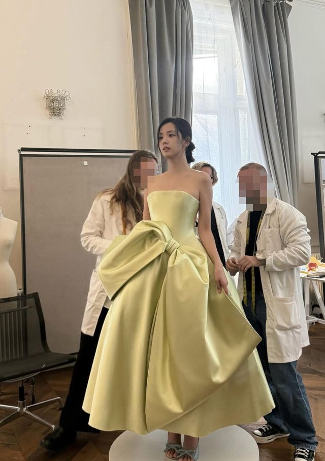 지수는 최근 자신의 인스타그램을 통해 프랑스 파리에서 진행되는 한 명품 브랜드 행사를 앞두고 현지에서 진행된 의상 가봉 현장을 공개했다.