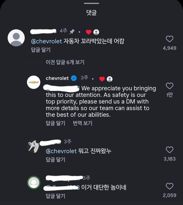 * 답장 해석 : 관심 가져주셔서 고마워요. 안전이 최우선이니만큼, 우리가 최대한의 능력을 발휘할 수 있도록 자세항 사항과 함께 DM 보내줘요.