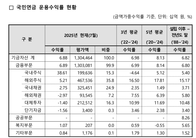 올해 1~7월 수익금 84.2조원 수익률 6.88%