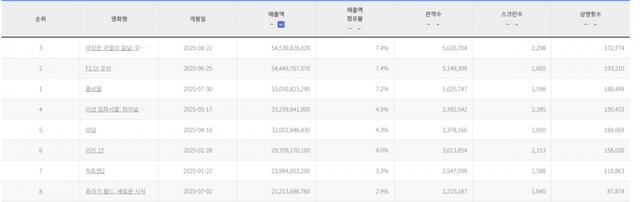 <귀멸의 칼날: 무한성편>이 9/30일(개봉 40일차) 기준 를 제치고 2025년 국내 박스 오피스 매출액 1위를 달성합니다
