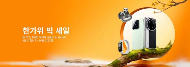 샤오미코리아가 추석을 맞아 10월 12일까지 한가위 빅세일을 연다. 스마트폰, 태블릿, TV, 로봇청소기, 공기청정기 등 주요 제품을 최대 20% 할인된 가격에 제공하며, 일부 제품 구매 고객에게는 사은품도 제공된다. 무이자 할부, 무료 배송, 환불 보장 등 다양한 혜택도 함께 마련됐다.