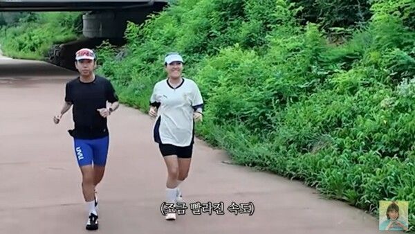 이은지는 지난달 30일 자신의 유튜브 채널에 '러닝으로 다이어트 성공한 이은지의 5km 완주 후 먹방'이라는 제목의 영상을 공개했다. 이날 그녀는 유튜버 '남태런'으로 활동 중인 개그맨 동료 남태령과 함께 5km 러닝에 도전했다.
