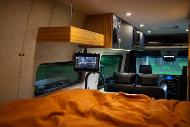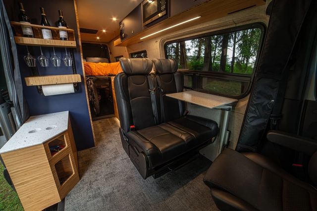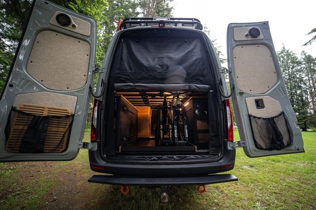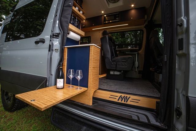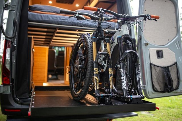 특히 샤워 벽을 활용한 미니 바는 와인 병과 잔을 안정적으로 거치할 수 있도록 설계돼 실용성과 스타일을 동시에 갖췄다. 후방 침대 아래에는 전기·수도 시스템과 함께 자전거 4대까지 수납 가능하며, 슬라이드식 트레이로 구성돼 장비 적재가 용이하다.