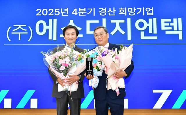 [파이낸셜경제=김예빈 기자] 경산시(시장 조현일)는 (주)에스디지엔텍을 2025년 4분기 경산 희망 기업으로 선정하고 1일 정례회에서 트로피 시상 및 현판 전달식을 가졌다.