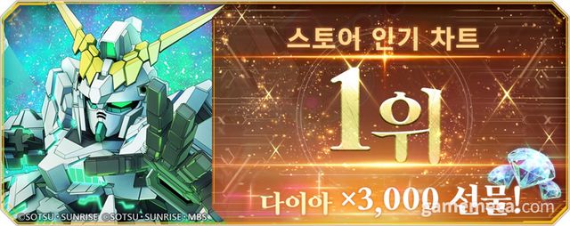 반다이남코 엔터테인먼트는 모바일게임 'SD건담 지 제네레이션 이터널'이 일본, 대만, 홍콩 앱마켓 인기 1위를 차지했다고 밝혔다. 이를 기념해 다이아 3,000개를 유저 전원에게 선물한다. 다이아는 튜토리얼 완료 후 받을 수 있다.