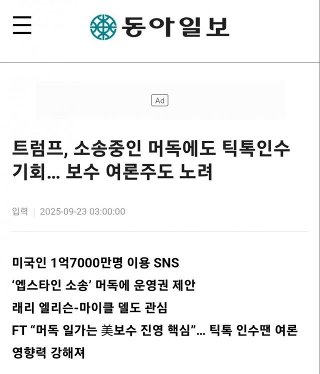 트럼프, 소송중인 머독에도 틱톡인수 기회… 보수 여론주도 노려|동아일보