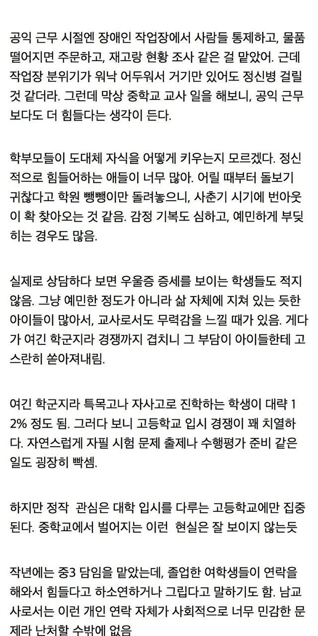 중학교 교사가 헬무지 공익보다 더 힘듬