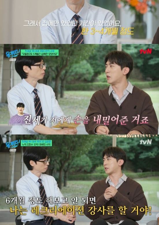 이어 "오늘 '유퀴즈' 녹화 끝나고 다른 방송 녹화도 있고, 강연도 있다. 요즘 강연을 많이 다닌다. '하고 싶은 것이 있으면 당장 실행에 옮겨라' '실패는 반드시 성공으로 돌아온다'는 것이 강연 주제다. 저도 강연을 하면서 뭉클하다"고 말해 웃음을 줬다.