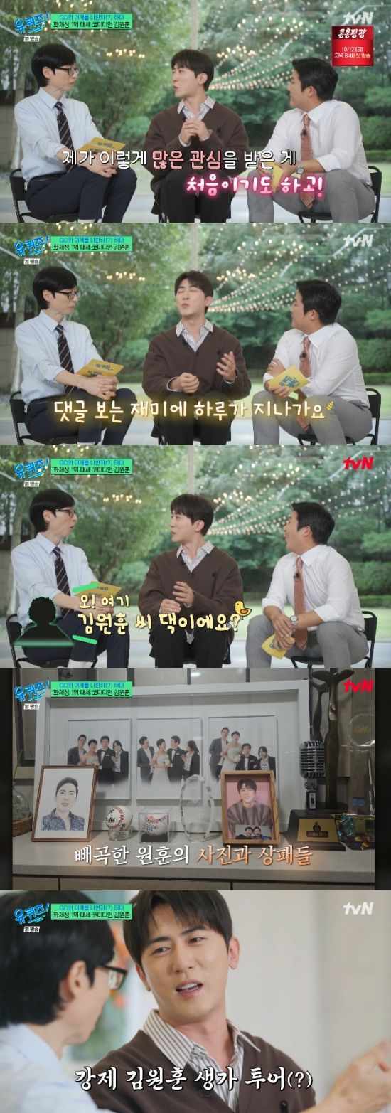 요즘 대세 코미디언으로 인기를 실감한다는 김원훈은 "이렇게 많은 관심을 받는 것이 처음이라 대중이 저를 어떻게 생각하시는지 궁금해서 댓글을 찾아본다. 댓글 보는 재미에 하루가 빨리 지나간다"면서 좋아했다.