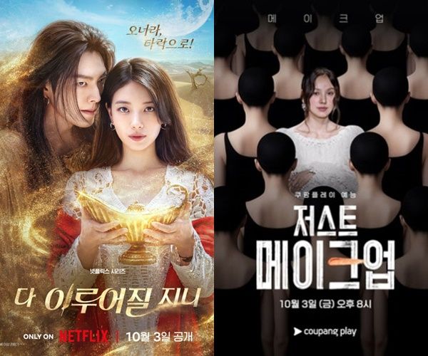 올 하반기 최고 기대작인 김은숙 작가의 신작 ‘다 이루어질지니’가 오는 3일 공개된다. 배우 김우빈·수지가 주연을 맡아 램프의 정령과 감정 결여 인간이 세 가지 소원을 두고 벌이는 로맨틱 코미디를 그린다. 김은숙 작가 특유의 유쾌한 대사와 로맨스 감각이 기대를 모은다.