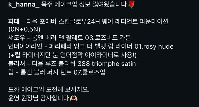 아이섀도는 그 시절의 고증을 위해 글리터나 과한 색감을 최대한 덜어냈고 붉은 컬러의 계열을 많이 사용했다. 음영을 브라운이 아니라 말린 장빗빛과 MLBB 컬러 가득한 롬앤 베러 댄 팔레트 #03 로즈버드 가든을 활용했다고. 베이스는 넓게 펼치고, 포인트 컬러는 얇게 깔아 눈을 깜빡일 때마다 세련된 음영을 완성했다. 특히 언더라인까지 연결된 붉은 빛이 핵심. 브라운 섀도나 스틱 대신 페리페라 잉크 더 벨벳 립 라이너 #01 로지 누드를 점막 채우는 용도로 쓴 게 기막힌 선택이다. 그래서 꼭 눈 밑은 금방이라도 눈물이 떨어질 듯 섬세하게 연출했다. 목주 특유의 아슬아슬한 도화 메이크업의 한 끗이 아닐까.