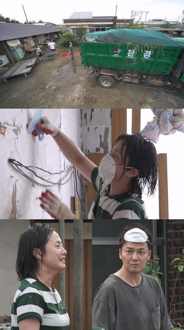이어 세 사람은 마스크를 끼고, 누수로 곰팡이가 핀 조부모님 방 벽지를 뜯어내는데, 박나래는 '박도배'의 실력을 발휘하며 전문가 포스를 뽐낸다. 앞서 도배 기술을 배우며 조부모님 댁에 도배를 해드리고 싶다고 밝혔던 박나래. 오래된 벽지를 뜯어내던 그는 "너무 속 시원해"라며 홀가분한 표정을 짓는다.