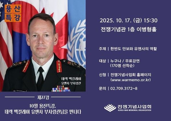 뉴시스 보도에 따르면, 맥컬레이 부사령관은 이번 강연에서 6·25전쟁 유엔군 참전의 역사적 의미를 되새기고, 한반도의 평화와 안보를 위한 유엔사 역할에 대해 집중적으로 조명할 예정이다.