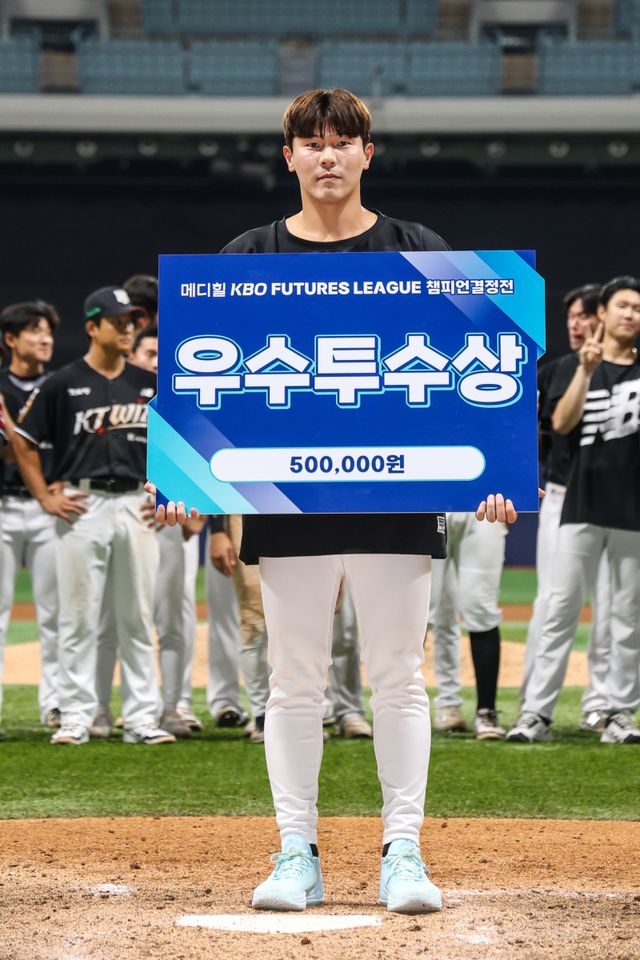 한차현은 지난 1일 서울 고척스카이돔에서 열린 2025 메디힐 퓨처스리그 챔피언결정전 국군체육부대(상무) 야구단과의 결승전에 선발 등판했다. 준결승전 불펜 투입 후 이틀 만의 재등판이었다. 강행군 속에도 그는 선발을 자처했고, 이날 3이닝 동안 57개의 공을 던져 3피안타 무사사구 6탈삼진 무실점으로 호투, 팀의 10-5 승리를 이끌었다. 그는 챔피언결정전 우수투수상을 받으며 노력을 인정받았다.