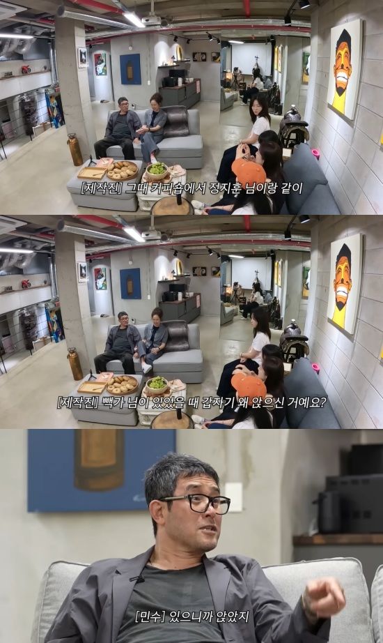 이와 관련해 최민수는 "그냥 있으니까 앉았다"고 말했고, 빽가가 중학생일 당시 '야 최민수다'라고 말했다가 꿀밤을 맞았다는 것에 대해서는 "그건 기억이 안 난다"고 밝혔다.