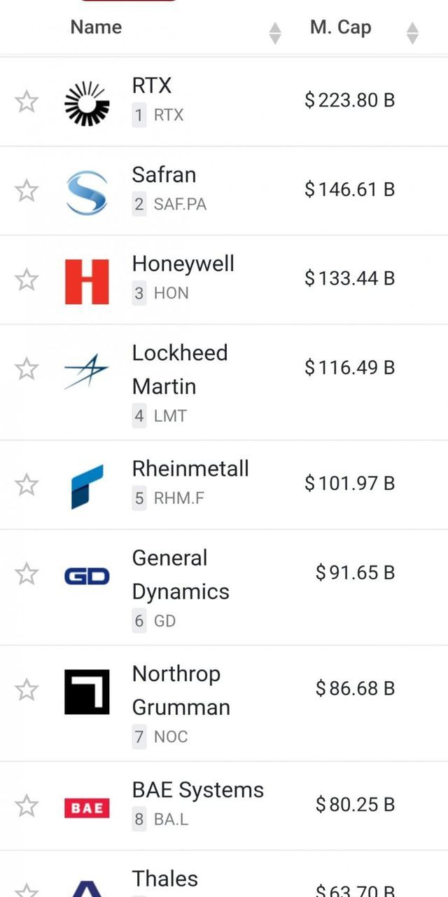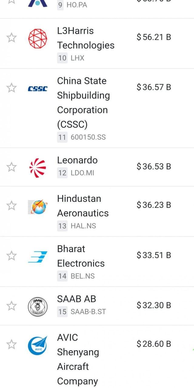 현재 전세계 방산업체 시가총액 톱20중 거의 절반이 유럽 방산업체인 상황.