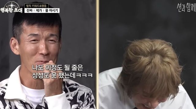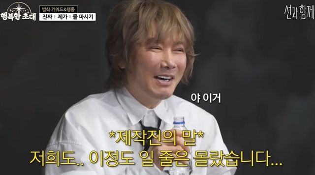 이날 김장훈은 션과 뛰면서 인터뷰하는 걸 기대했는데, 다른 콘텐츠 촬영을 제안받았다고 밝혔다. 션은 “저희 피디가 꽤 오래전부터 기획했는데, 형님이 딱이다”라며 ‘행복한 초대’의 취지를 밝혔다. ‘대화만 나눠도 기부가 된다’고.