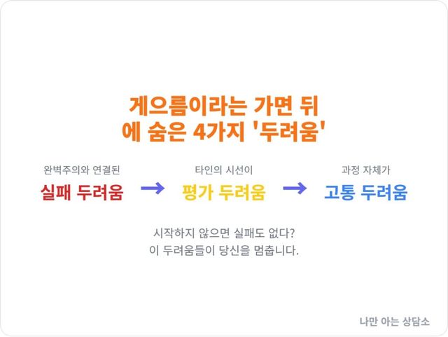 The post ‘미루는 습관’의 숨겨진 심리, 게으름이 아닌 두려움의 신호 appeared first on 나만 아는 상담소.