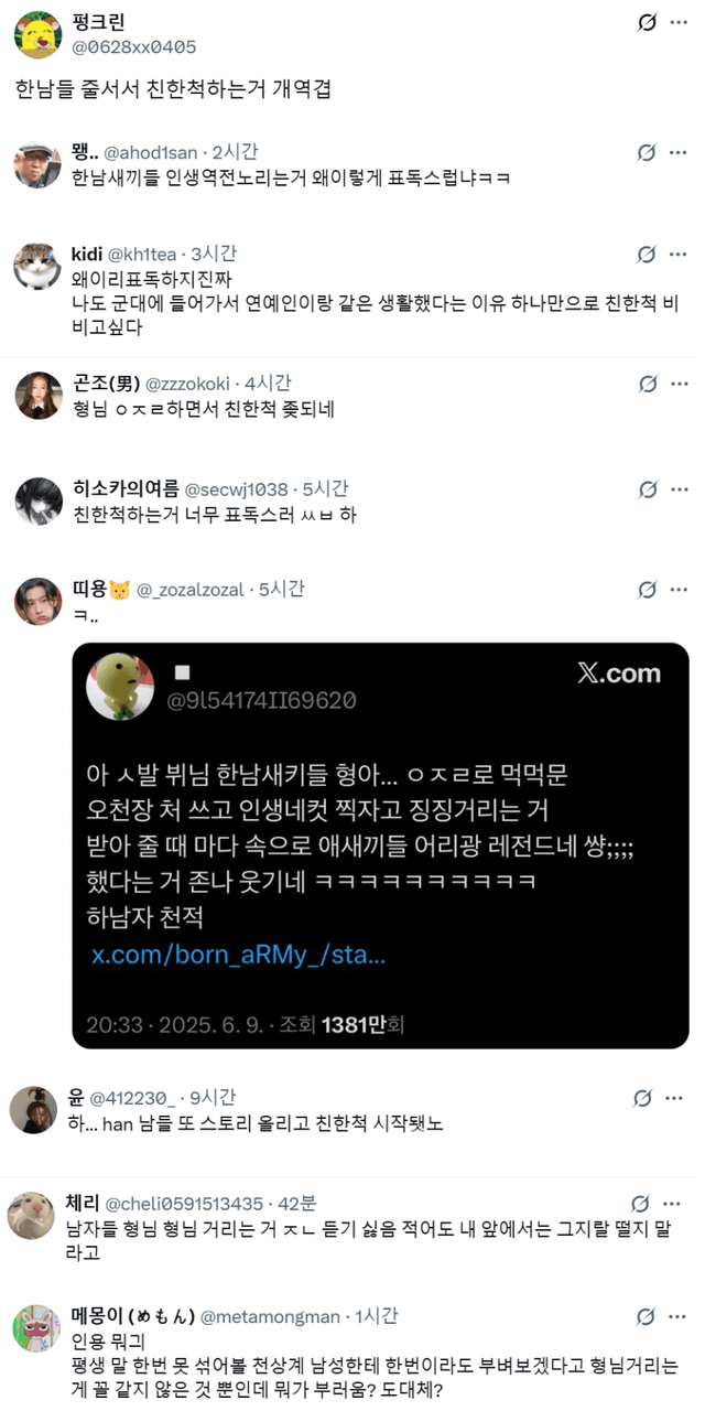 "하 친한척 하는 한남들 왤케 표독스럽지"