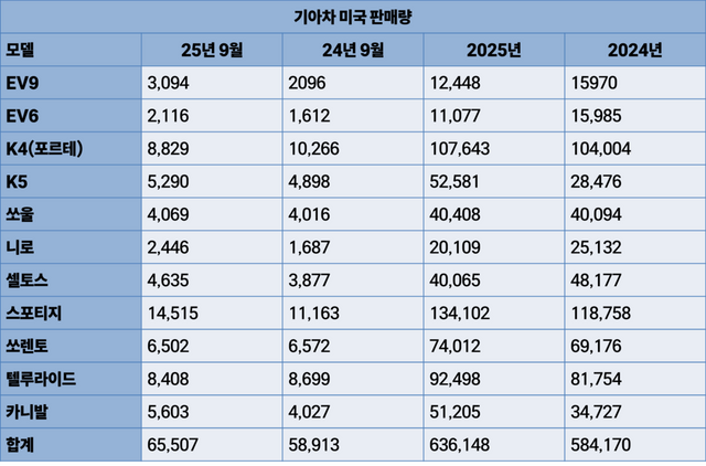 올해 누적 실적을 보면 전기차 부진이 뚜렷함을 확인할 수 있다. EV9은 지난해 약 1만 6,000대에서 올해 1만 2,448대로 감소했고, EV6 역시 1만 5,985대에서 1만 1,077대로 줄었다.