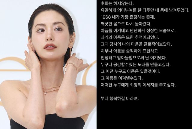 그런 어머니가 태어난 해 1968년만 남기고 모든 타투를 지운 나나는 “치부나 아픔을 솔직하게 표현하고 인정하고 받아들임으로써 난 이겨냈다”고 고백했다.