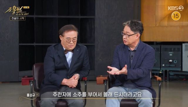 이날 임진모는 조용필에게 놀란 일화를 밝혔다. 임진모는 “폭탄주 30분 동안 13잔 드시더라”라고 했고, 홍성규는 “조용필 씨는 양주, 폭탄주보다 소주를 즐긴다. 양주 파는 주점에 가서 술을 드셔도 주전자에 소주를 부어서 몰래 먹는다”라고 폭로했다. 임진모는 “그래서 ‘가왕’인 동시에 ‘주왕'”이라고 덧붙였다.