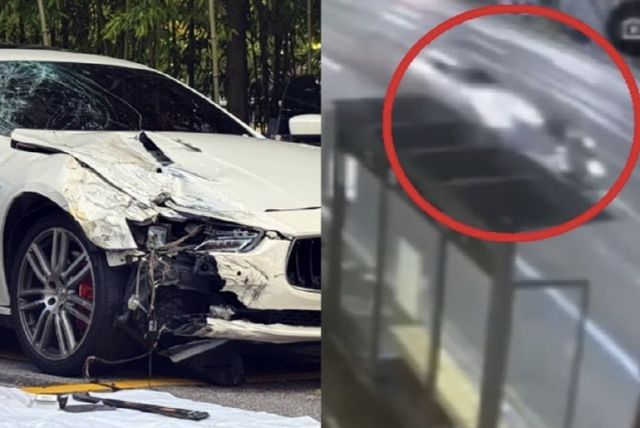 사고 당시 상황이 찍힌 인근 상가 CCTV 영상을 보면, 질주하던 흰색 마세라티가 신호를 무시하고 빠른 속도로 달라오더니 앞서가던 C씨 오토바이를 들이받는다. 이 충격으로 오토바이는 수십 미터를 날아갔고 C씨와 여자친구도 도로로 추락했다. 그러나 마세라티는 속도를 줄이지 않고 그대로 도주하는 모습이 고스란히 담겼다.