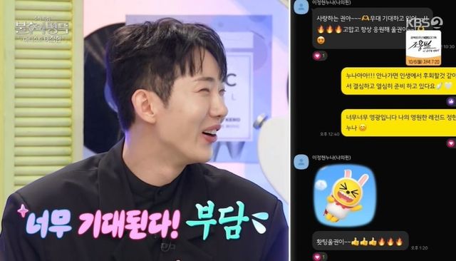 조권은 이정현과의 개인적인 친분에 관해 “알고 지낸 지 오래됐다. 결혼하시기 전에 친구들과 홈파티할 때도 초대받아서 거실에서 ‘와’도 추었다. 볼륨 줄이고”라고 말해 웃음을 안겼다. 조권은 이정현에게 직접 연락을 받았냐는 말에 “출연진 기사가 먼저 나서 정말 오랜만에 3~4일 전에 연락이 왔다. 너무 기대된다고 하시더라. 그래서 부담됐다. ‘차라리 연락 주지 마시지’란 생각이 들 정도로”라면서도 “너무 응원하고 오랜만에 봐서 좋단 얘기 해주셨다”라며 응원받았다고 전했다.