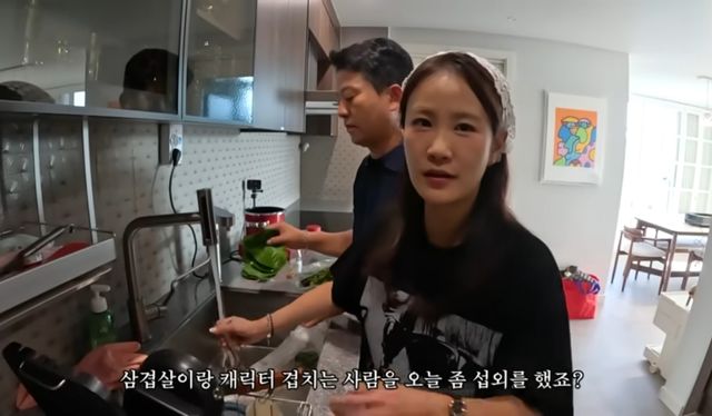 영상 속 두 사람은 신혼답게 사이좋은 모습으로 식사를 준비했고, 김지민은 "삼겹살이랑 캐릭터가 겹치는 사람을 섭외를 했다"고 설명했다.