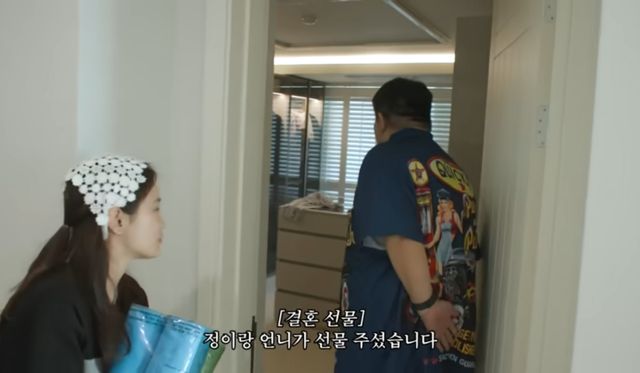 두 사람의 집을 첫방문한 유민상은 먼저 전체적으로 넓은 집에 감탄했고, 이어 드레스룸에 도착하자 김지민은 "정이랑 언니가 선물 주셨다"라고 자랑했다.