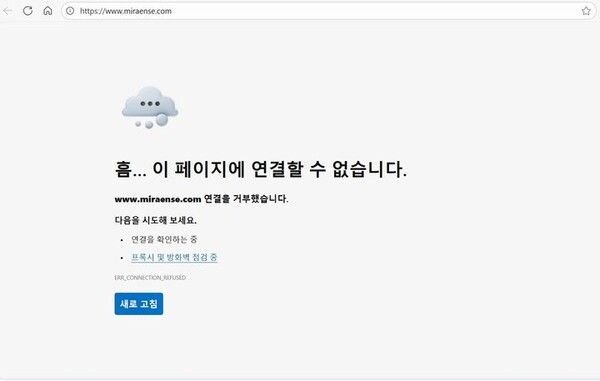 현재 회사 홈페이지는 접속이 불가한 상태다.