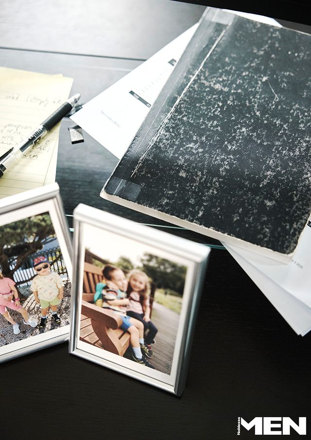 사무실 책상 위에 놓인 자녀 사진과 자주 활용하는 노트.