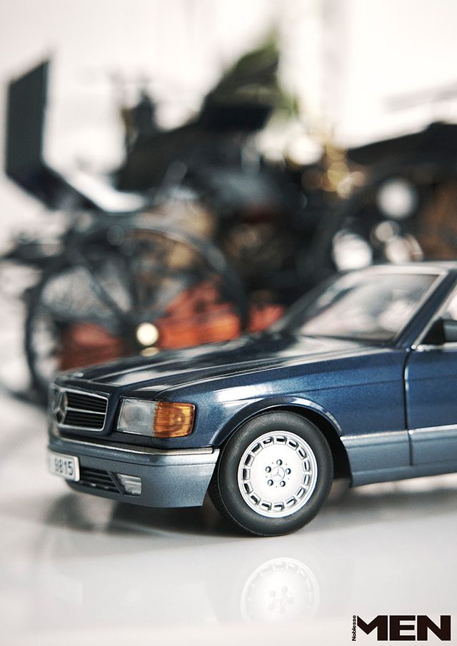 책상 위에 자리한 1980년대 S-클래스 쿠페 다이캐스트.