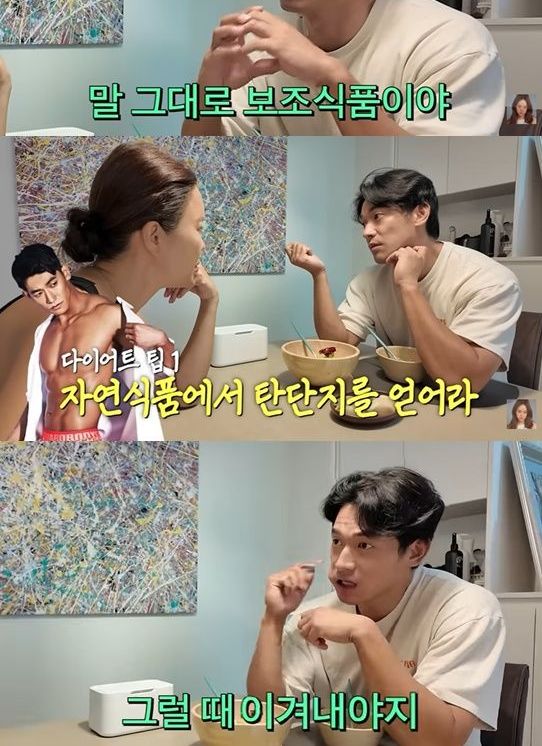 정석원은 "요즘 운동하는 친구들 보면 탄단지를 자연 식품에서 얻으려고 한다. 보조 식품은 말 그대로 보조 식품이다. 식사를 못했을 경우 그걸 대체해 주는 보조식품"이라고 강조하며 "가급적이면 내 주변에 있는 사람들은 권하지 않는다"고 말했다.